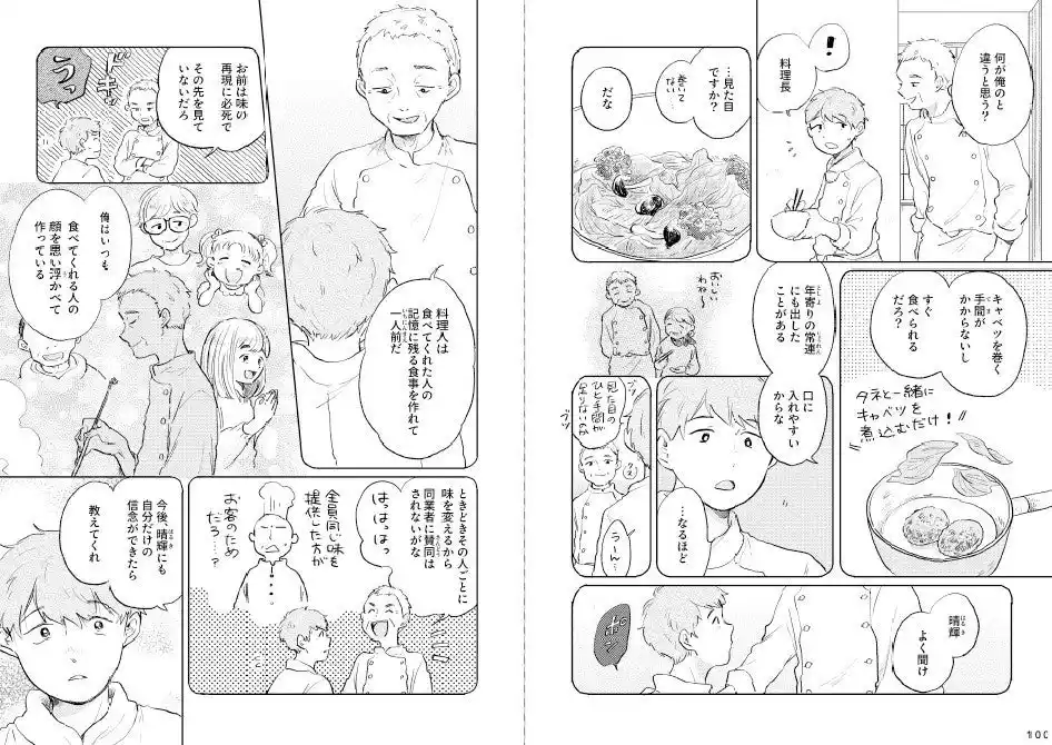 | 8巻は、ハルと入居者の辻谷さんのお話です。ハルが勤めるグループホームに新しく入居した辻谷さんは、ハルが前に勤めていたレストランの元料理長でした。入居当初、辻谷さんはハルのことを覚えておらず、ハルのつくるごはんを難しい顔をして食べています。それから数日後、他の入居者の誕生日会に参加した辻谷さんはおもむろに立ち上がり「お祝いの料理をつくる」と言いキッチンへと向かいます。ハルと入居者たちの思い出をたどる『ハルと思い出めぐりごはん』の最終巻です。 | ||||||