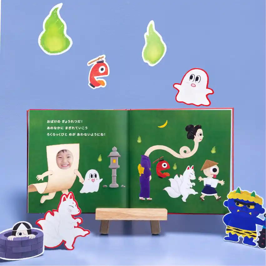 | アート印刷株式会社(本社:東京都港区、代表:有松敏樹)は、2025年8月6日(水)より顔はめパネル風絵本『おばけのくに』を自社ECサイト「うきうき! LAB」にて発売開始しました。お子様の写真と名前をアップロードするだけで、世界に一つだけの特別な絵本を制作できます。主人公となるお子様が「おばけのくに」に迷い込み、様々なおばけの姿に変装しながら「にんげんのくに」を目指すという物語を、深い共感と没入感を味わいながら楽しんでいただけます。絵本本文にオリジナルメッセージを入れることができるのでプレゼントにもぴったりです。 | ||||||||||||||||||||