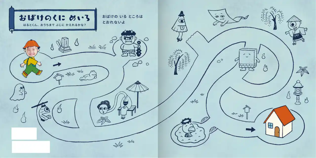 | ぬりかべや河童、猫又や一反木綿などに変装しながら進む主人公は、はたしておばけたちに見つからずに帰れるのでしょうか? | ||||||||||||||||||||
