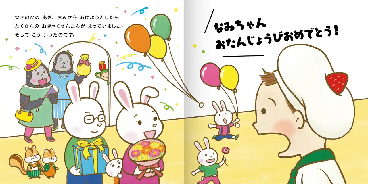 | 『うきうき!LAB』発刊の絵本は、ただ「お名前が入る」というだけではありません。「ストーリーがおもしろいか」や「共感できる絵であるか」など、絵本としても完成度が高い作品であることを目指して妥協せずに作品作りを行っています。単なるアルバム絵本ではなく、「お名前や写真が入る」というギミックを活かした唯一無二の絵本となるよう、創意工夫を凝らしています。 | ||||||||||||||||||||