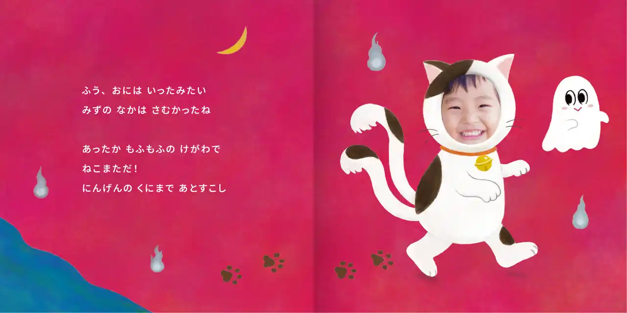 | 顔写真・お名前が入った世界にひとつだけの特別な絵本はプレゼントにも。「おばけのくに」に迷い込んだ主人公となるお子様が、様々なおばけに変装しながら「にんげんのくに」を目指す、夏にぴったりの物語 |