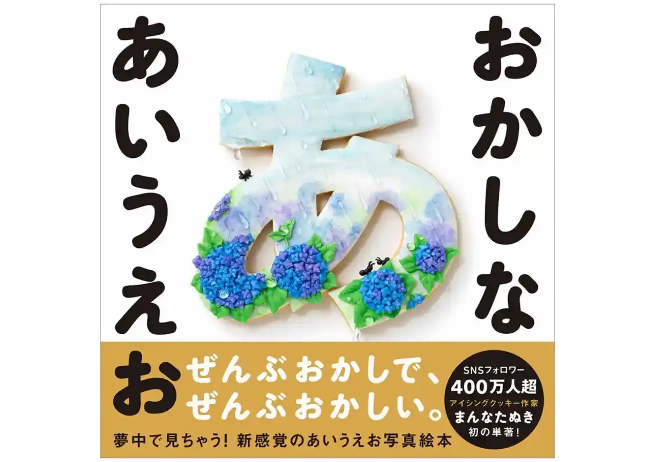 本書は、ひらがな46文字を一枚ずつ本物のアイシングクッキーで表現し、写真に収めた新感覚のあいうえお絵本です。見て楽しく、食べても美味しい、親子で一緒に楽しめる一冊に仕上がりました。 |