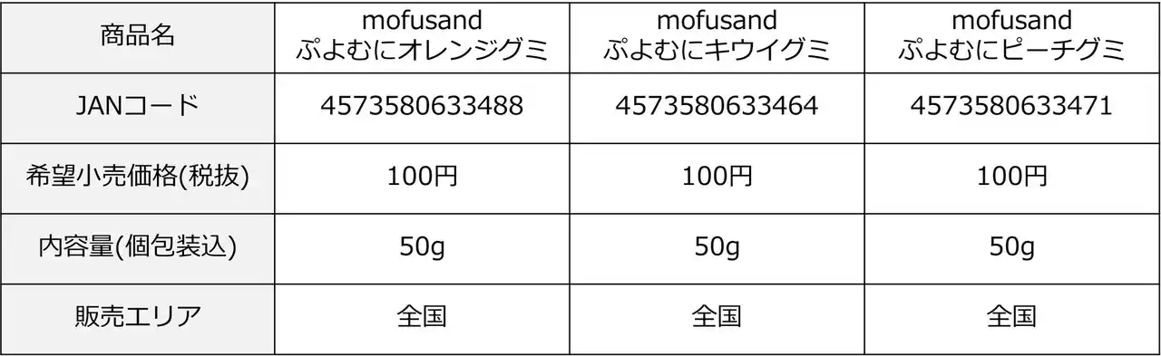 | 栄光堂ファクトリー株式会社(本社:岐阜県大垣市、代表取締役社長:水上寛行)は、2025年9月1日(月)より、人気キャラクター「mofusand」とコラボレーションした新商品「mofusand ぷよむにフルーツグミ」を発売いたします。 | |||