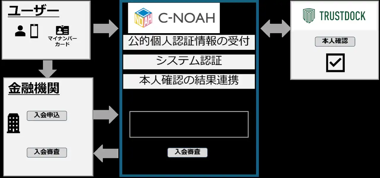 公的個人認証サービスに対応したTRUSTDOCKのオンライン本人確認サービスを連携することで、C-NOAH上でマイナンバーカードによる本人確認機能がご利用いただけます。 |