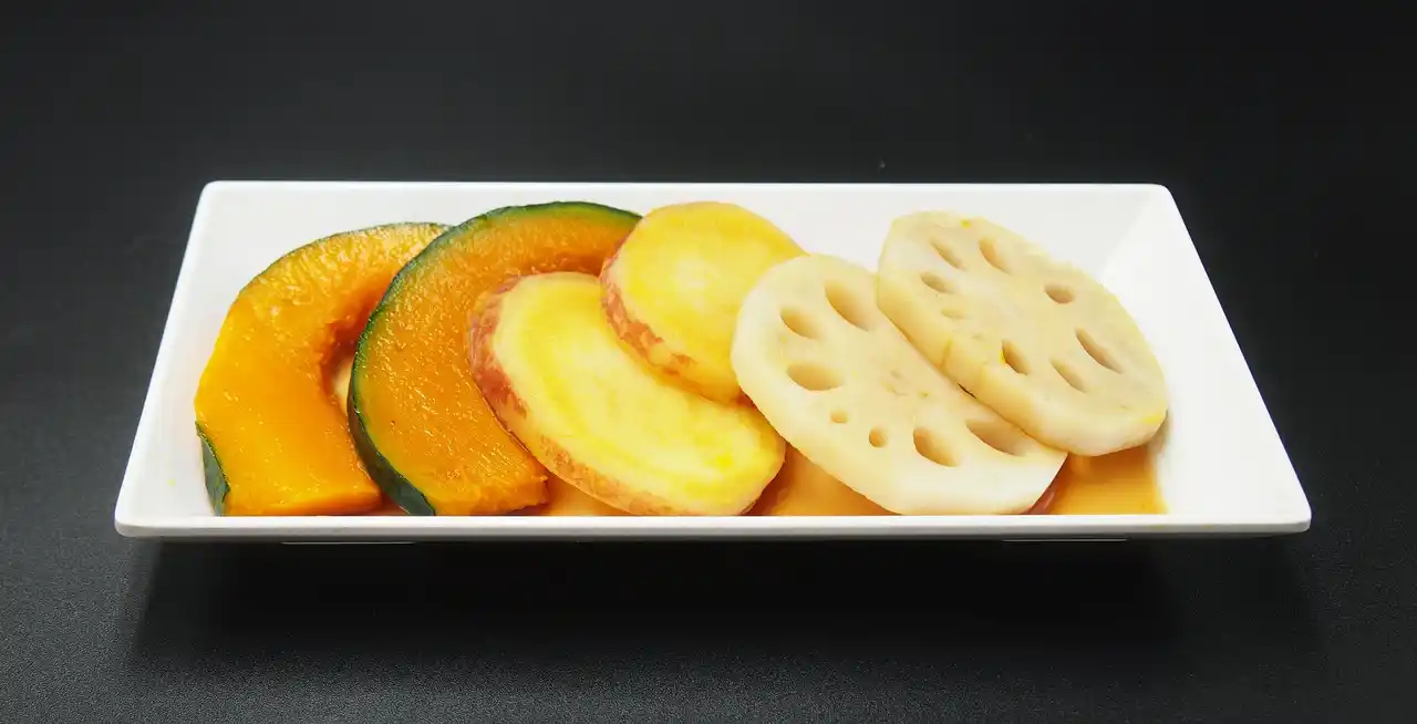 | ◆秋の焼野菜盛合せ:さっと茹でたカボチャ、さつまいも、レンコンを焼いてお召し上がりください。 | |||||||||||||||||||