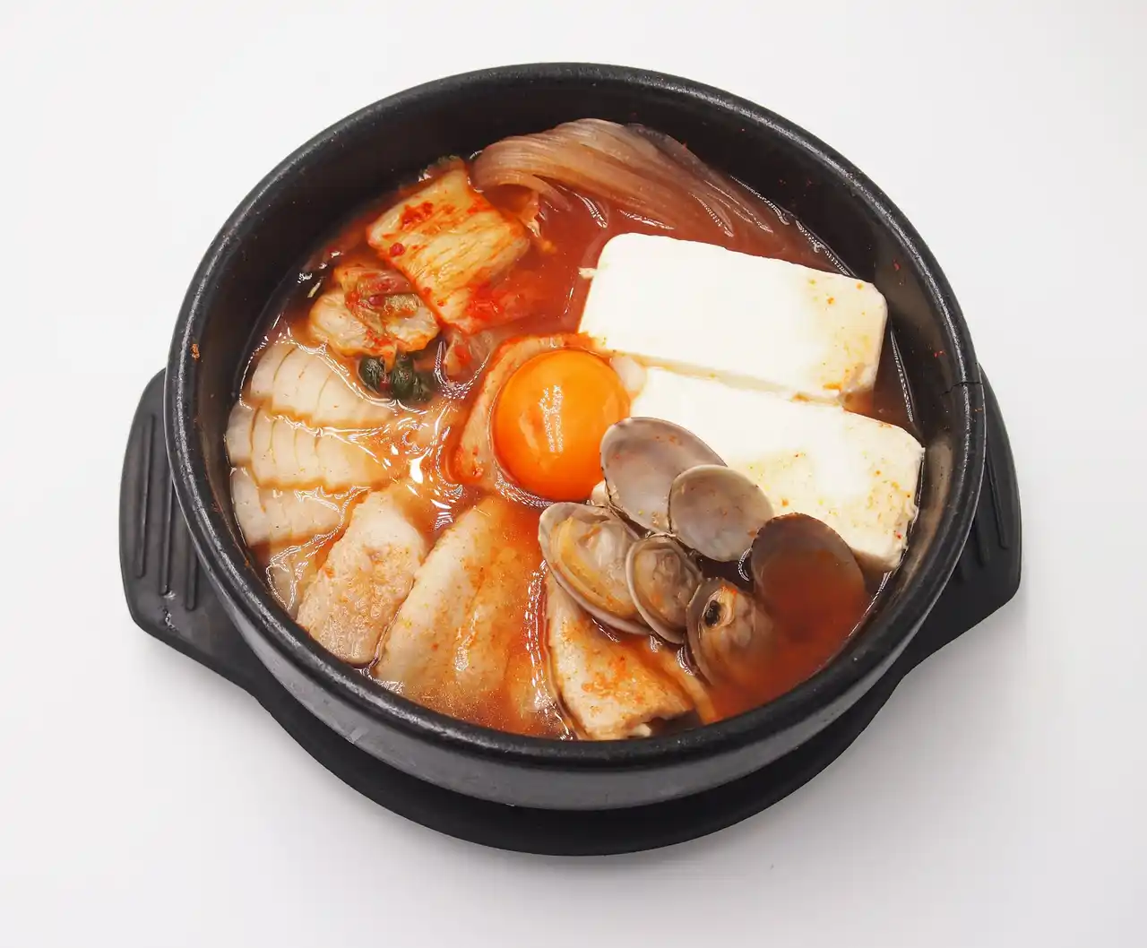 | ◆豚キムチスンドゥブ:キムチ、豚カルビ、アサリ、野菜の旨味がたっぷり詰まった一品です。 | |||||||||||||||||||