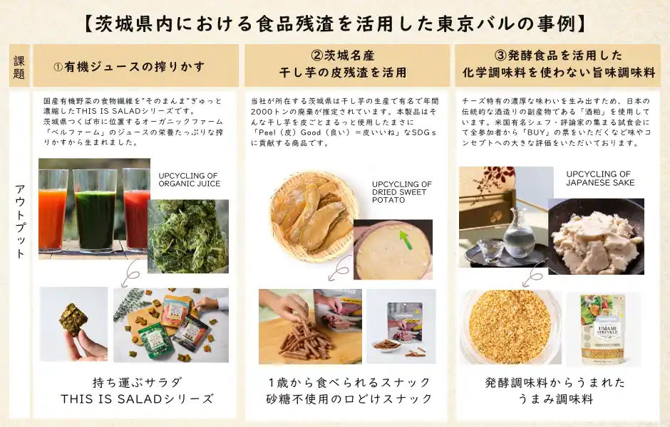 アップサイクル、プラントベース食品、規格外商品や残渣の有効活用にご興味がある事業者さまは、こちらまで連絡ください:https://tokyobal.co.jp/pages/contact |