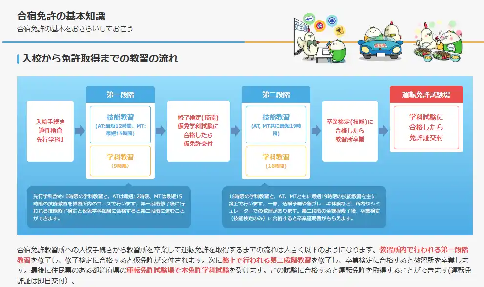 持ち物チェックリストや教習所生活のコツなど、免許取得に役立つ情報を掲載。 |