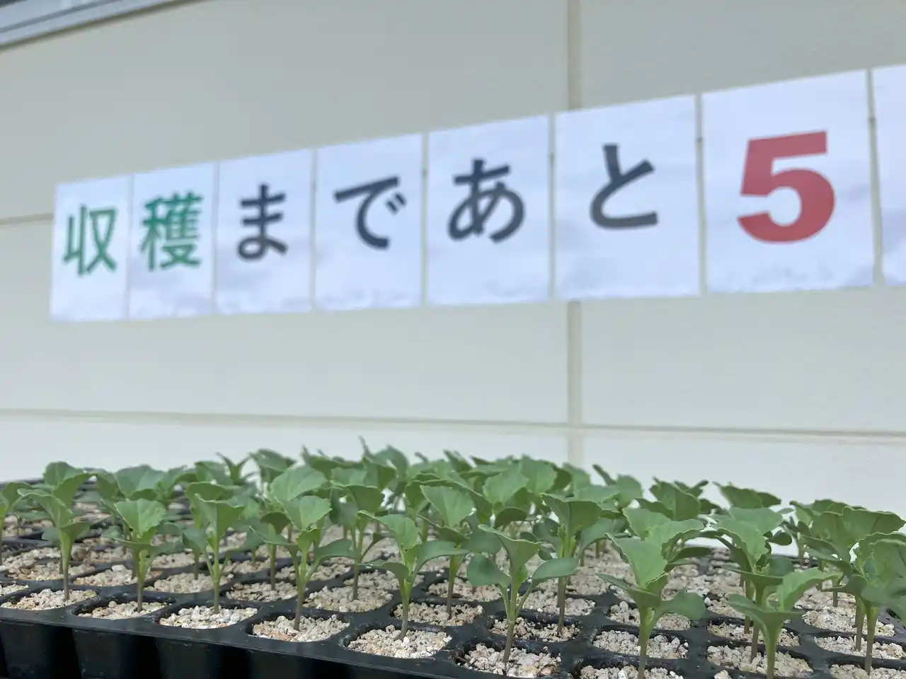 | 今回は、普段ウェブ上で確認している生育予測システムを、子どもたちが分かりやすいよう、アナログなカウントダウンポスター形式で「収穫まであと〇日」と表示。成長の進捗と収穫のタイミングを視覚的に把握できるような仕掛けを取り入れています。 | |||