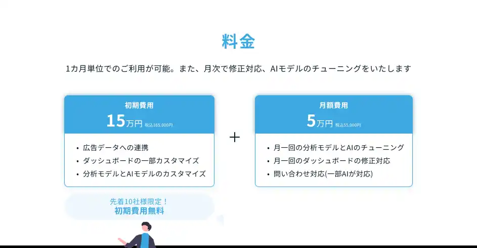 | AIマーケダッシュボードの導入をご決定いただいた会社様のうち先着で10社様に対し、 | |||