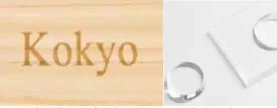 (左) 木材への印字、(右) アクリルへの切断・穴あけ加工 |