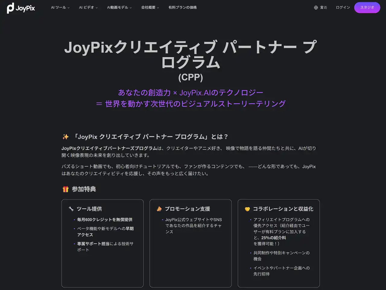 JoyPix クリエイティブパートナープログラム(CPP)の特設サイト |