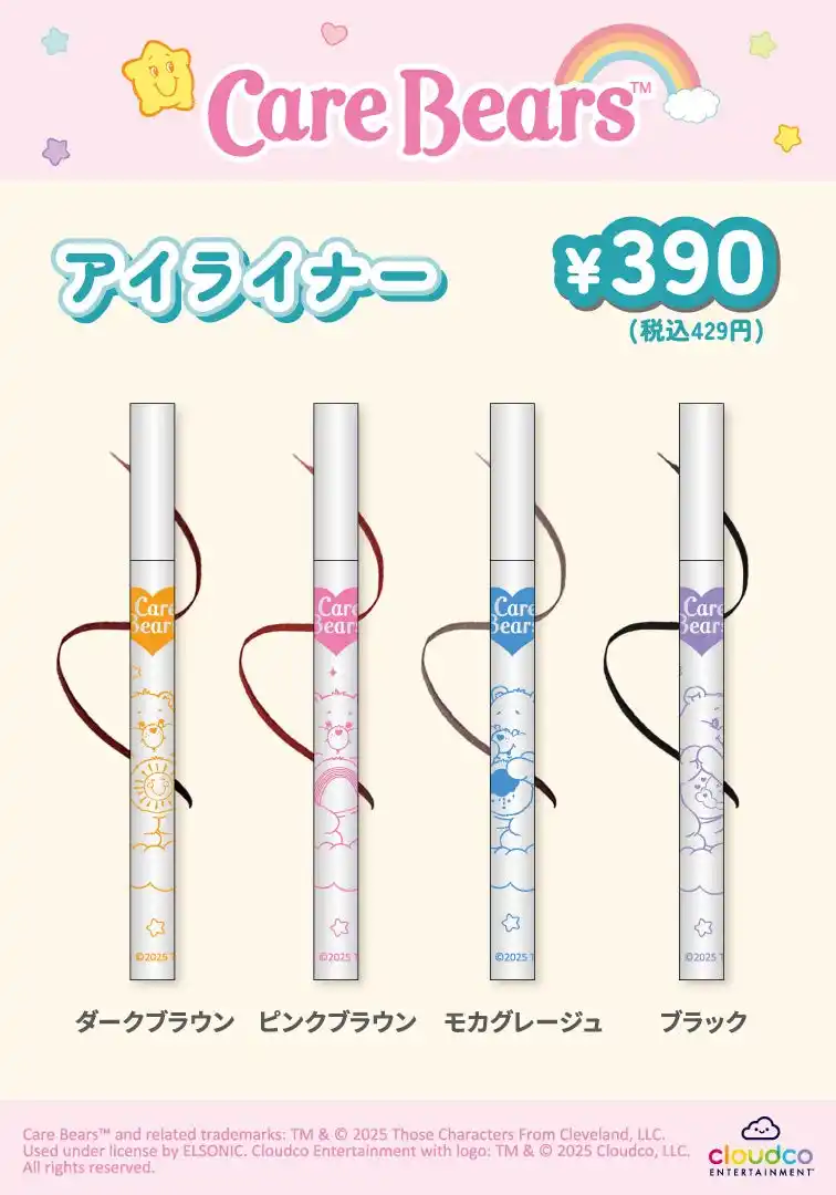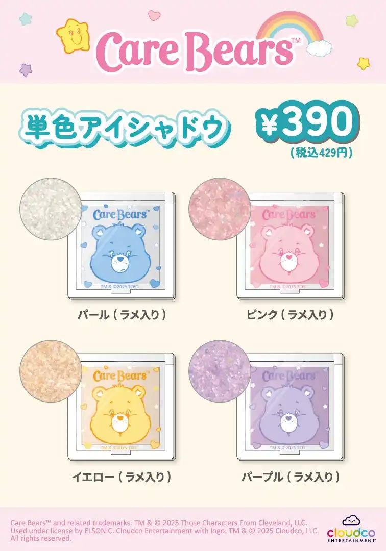 今回はパステルカラーのケアベア(TM)がキュートな、日常使いのコスメアイテムを展開します。 |