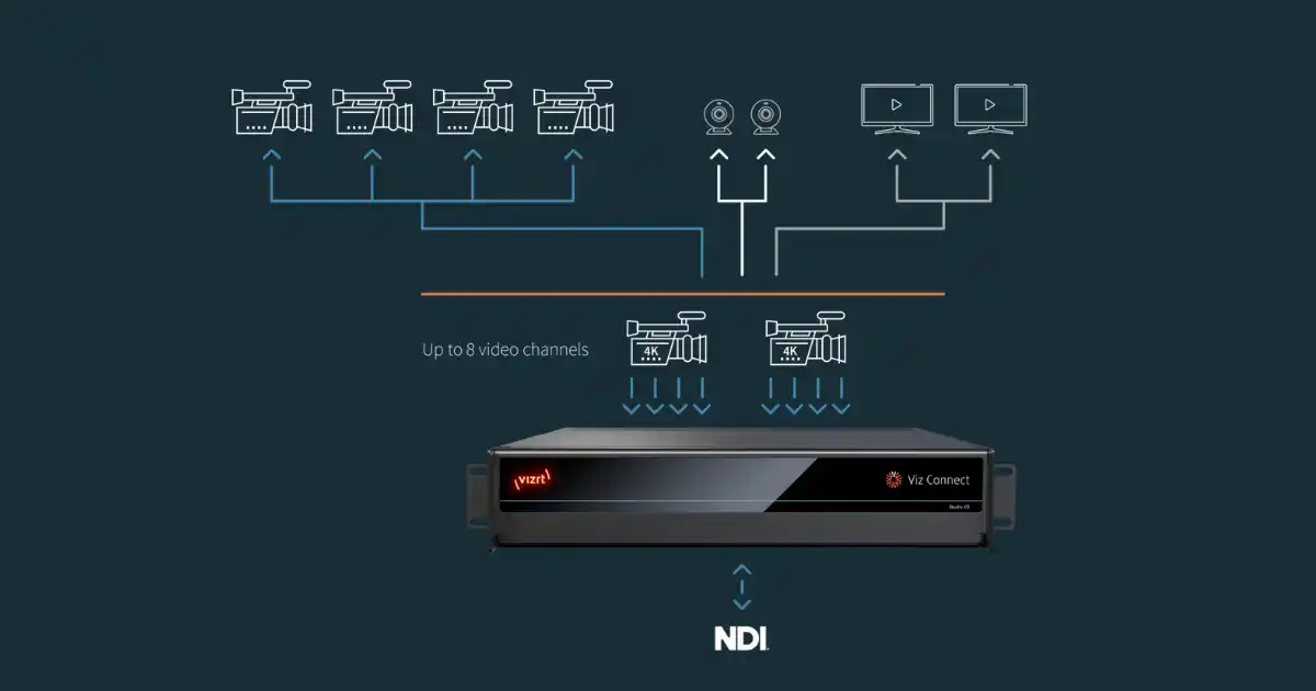 | 「Viz Connect Studio I/O」は、従来の「NC2 I/O」と同等のSDI⇄NDI変換機能を備えた後継モデルとして、Vizrtの新たなI/Oシリーズ「Viz Connectシリーズ」の中核を担う製品です。 | ||||||||||||||||||||||||||||