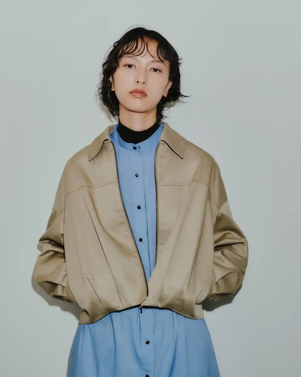 ジップアップブルゾンは、バランスよく着られるコンパクトなサイズ感で仕立てています。 |