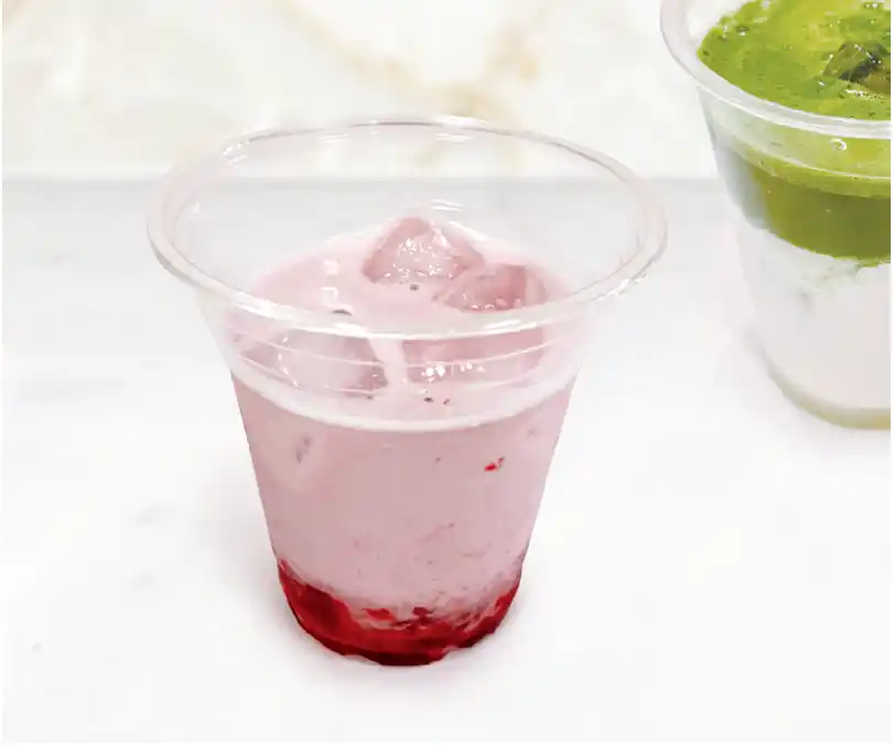 苺の果実が入ったミルクと溶け合う美味しい苺のラテです。是非、一度ご賞味ください。 |