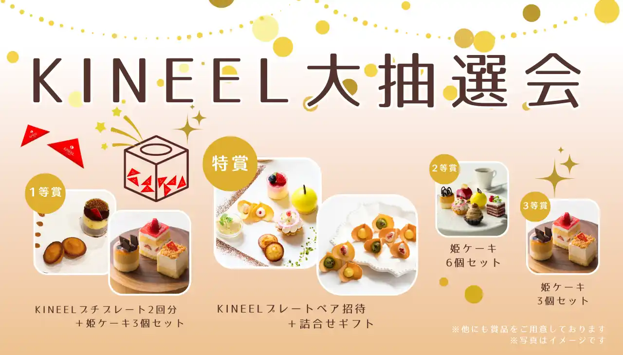 1等賞・・・KINEEL プチプレート2 回分 + 姫ケーキ3個セット |