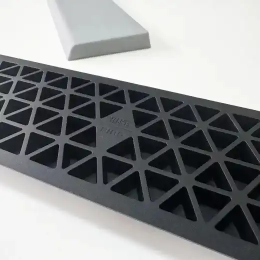 伝統と品質を両立したデザイン 設置面には日本の伝統文様「うろこ格子(鱗格子)」を採用。幾何学的に配置された鱗の形は、デザインとしての美しさに加え、ストッパーとしての機能性も兼ね備えています。さらに、格子状にすることでシリコン全体に適度な柔軟性が生まれ、天板のわずかな歪みにも自然にフィット。安定性と心地よさの両立を実現しています。 |