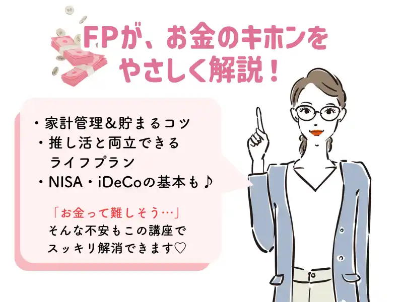 fasmeが開催する「マネーセミナー」は、推し活を楽しみながらも将来のお金に不安を感じている“推し活女子”に向けた無料のセミナーです。「我慢しない推し活」と「将来に備えるお金の知識」の両立をテーマに、初心者でも安心して参加できる内容で構成しています。 |