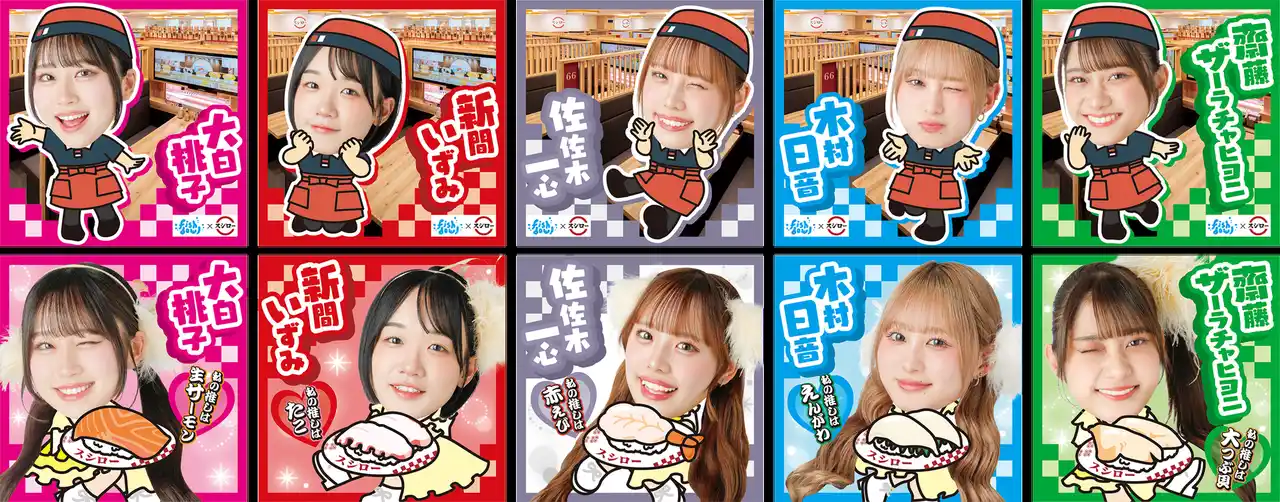 コリコリとした食感と磯の香りがたまりません。木村日音さんが選んだネタは「えんがわ」です。コリコリとした食感と脂のりが特長で、大葉との相性も抜群です。各メンバーが選んだすしネタに加え、「厳選まぐろ赤身」もお楽しみいただけます。めばち鮪の中でも濃厚で色味が濃い40kg以上の大型の魚体を厳選。旨みを逃がさないために店内でこだわりの温塩水解凍と切り付けを行っています。そして、商品にはコラボ限定ステッカー(全10種)がランダムで付いてきます。ステッカーに同封の二次元コードから応募いただくと、抽選でシークレットミーティングが当たるキャンペーンも実施いたします。 |