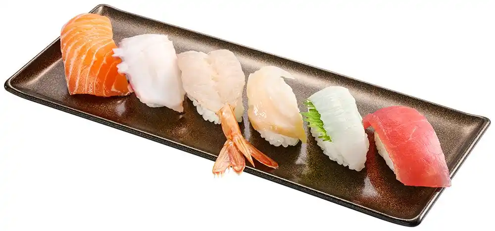 盛り合わせ内容:生サーモン、たこ、赤えび、大つぶ貝、えんがわ、厳選まぐろ赤身 |