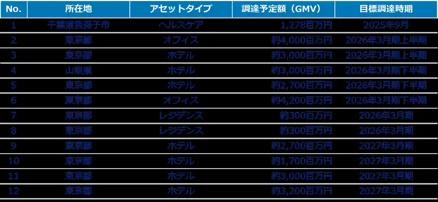 ※ 2025年8月14日時点で物件取得の蓋然性が高まってきている物件のみを記載 |