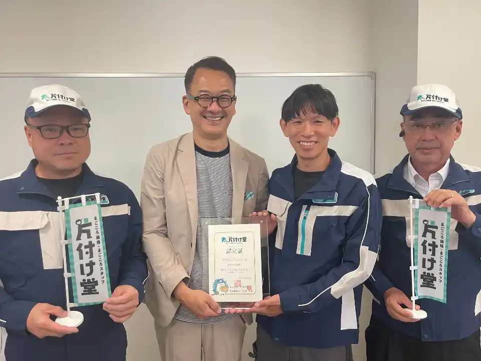 片付け堂 小澤社長 より 認定証を受け取る吉野スタッフ |