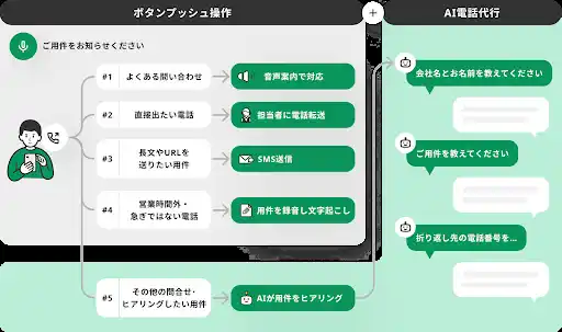 24時間365日稼働するAIが、電話応答を自動化・標準化し、業務効率と顧客体験の質を同時に向上させます。 |