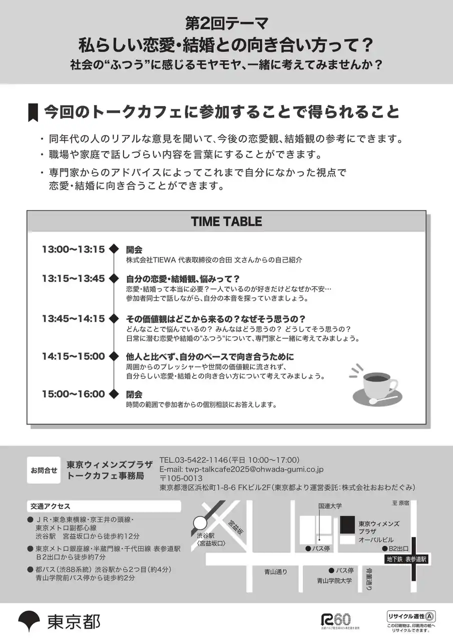 【 イベント名 】 東京ウィメンズプラザトークカフェ第2回 |