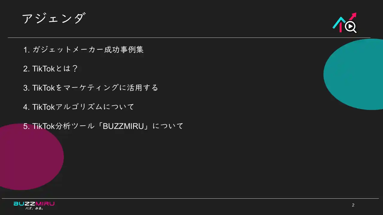 本レポートは、当社ツール「BUZZMIRU」の40万以上の動画データから、「成功事例 × トレンド × 運用ノウハウ」 をまとめ、TikTok を活用して売上・集客を伸ばすための実践知を提供します。 |