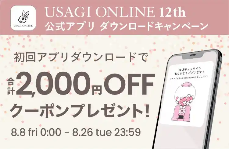 期間中、USAGI ONLINE公式アプリをダウンロードいただくと、合計2,000円OFFクーポンをプレゼント! |