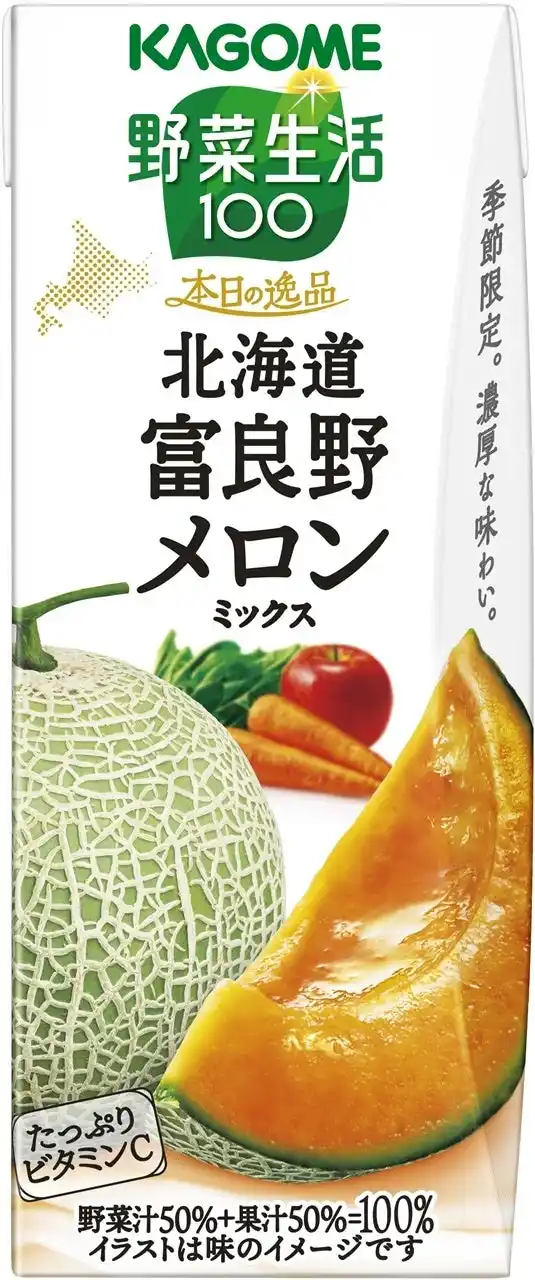 カゴメ株式会社(社長:山口聡、本社:愛知県名古屋市)は、「野菜生活100 本日の逸品 北海道富良野メロンミックス」を2025年9月16日(火)から11月下旬まで期間限定にて全国で発売いたします。(在庫がなくなり次第、販売終了) |