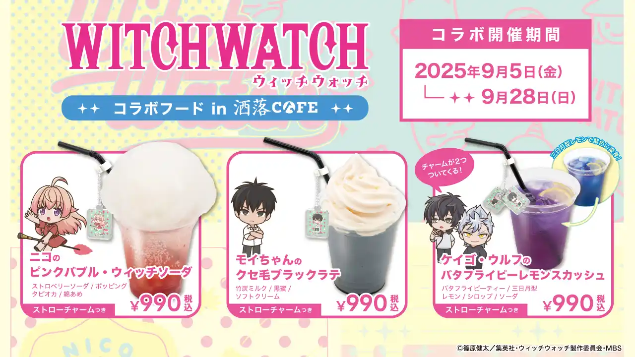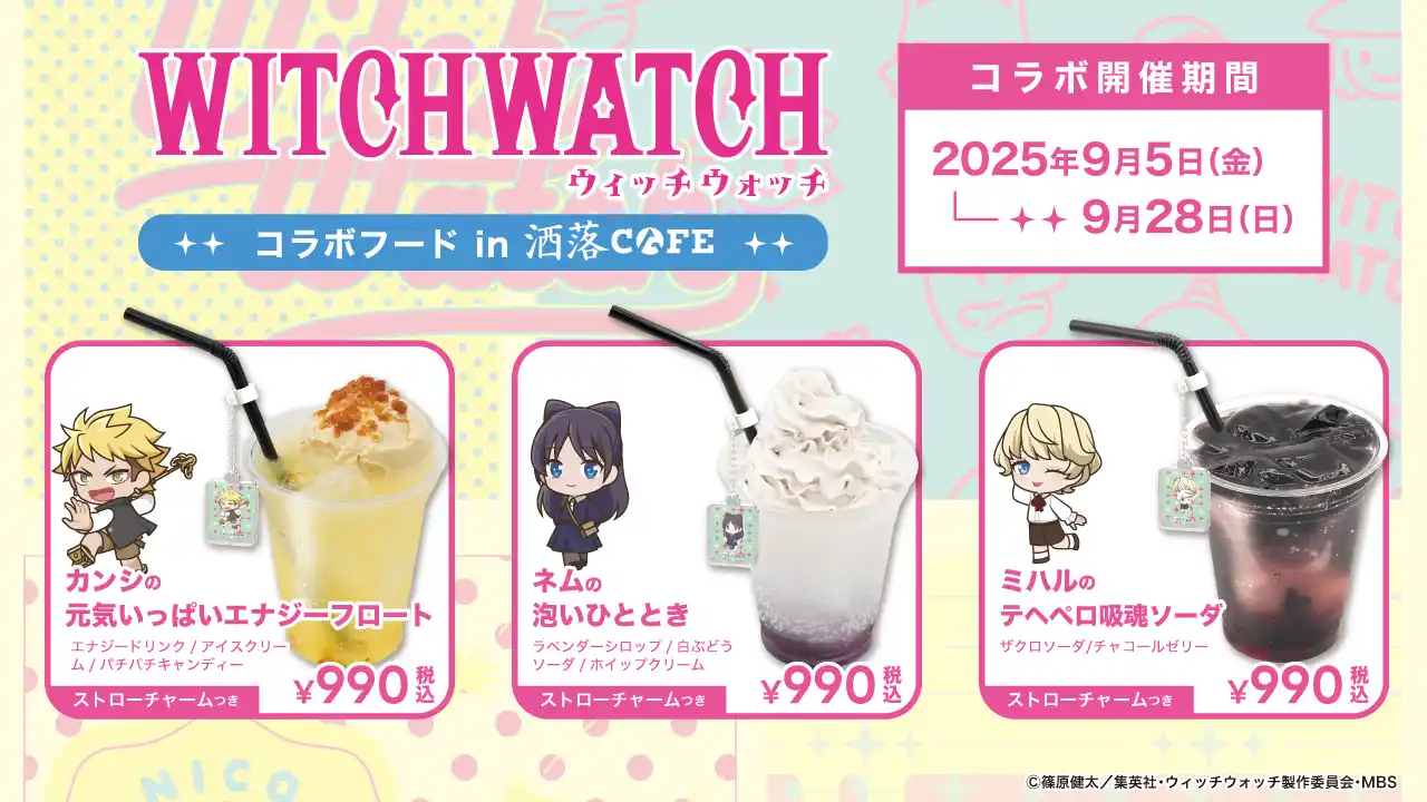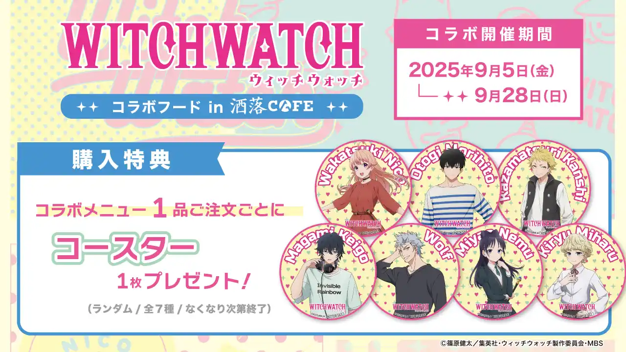 | Anique株式会社(本社:東京都千代田区、代表取締役:笠井高秀)は、TVアニメ『ウィッチウォッチ』とのコラボカフェを2025年9月5日(金)より東急プラザ原宿6F「洒落CAFE by Anique」ハラカド店にて開催いたします。 | |||||||||