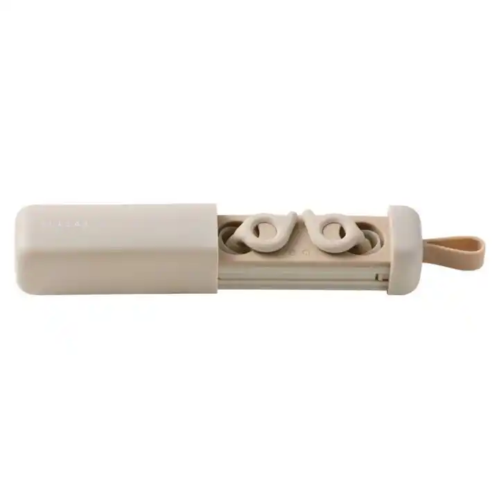 多くの人が悩む「耳栓の外れやすさ」を、独自の突起構造で改善。耳のくぼみにフィットする形状により睡眠時もずれにくく、高い遮音性をキープします。快適な装着感と遮音性を両立し、睡眠時はもちろん、仕事やカフェでの作業中など、集中したいシーンでも活躍します。また、水洗い可能でいつでも清潔に保つことができ、カラビナに取り付けられるループ付きケースはバッグやベルトにも装着可能なため、持ち運びの際に便利です。カラーは、ベージュ・ブラック・ホワイトの3種類からお選びいただけます。 |