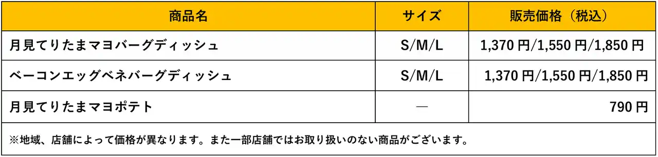※月見てりたまマヨバーグディッシュへのチーズトッピングは、2本までです。 |