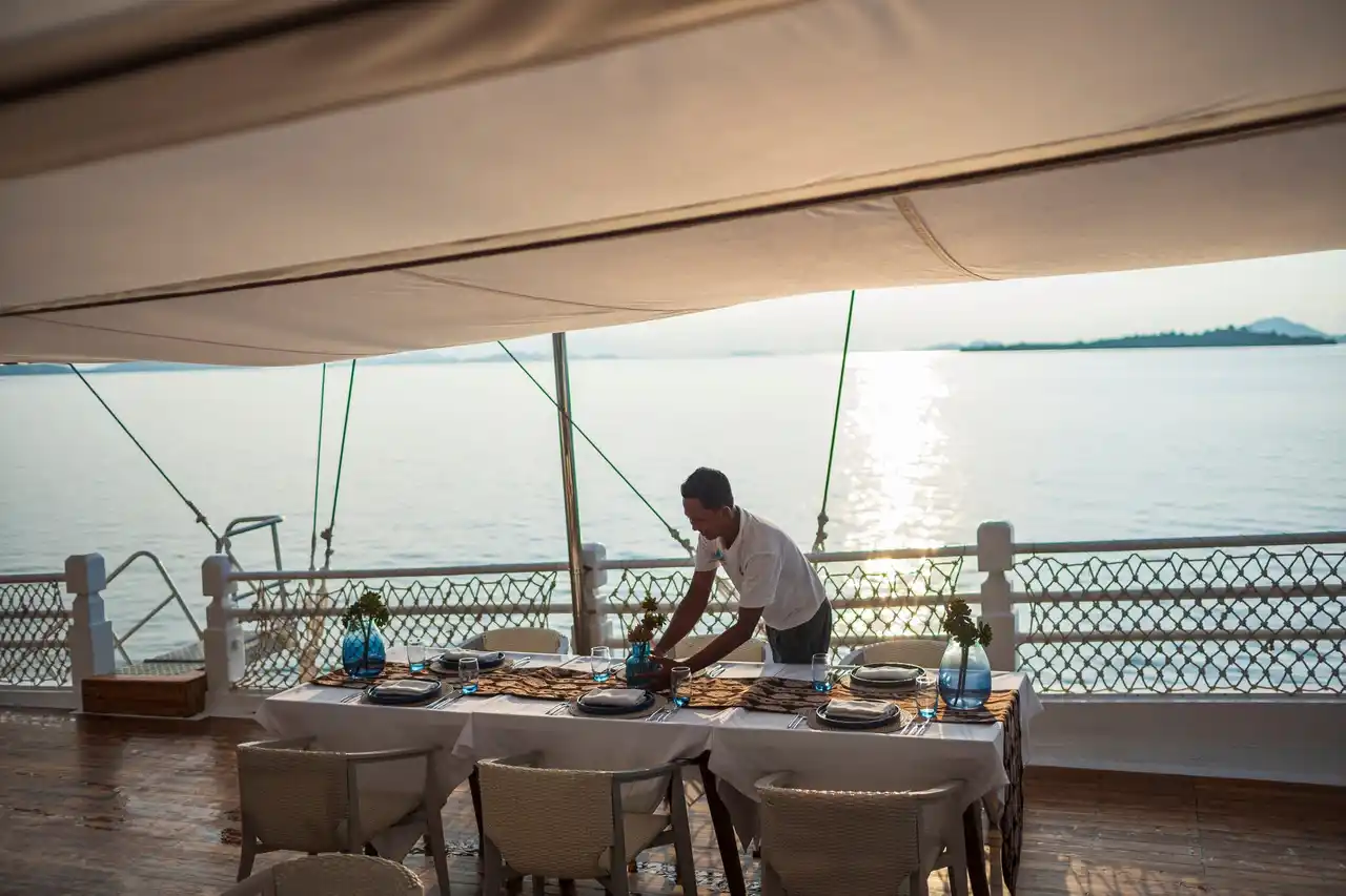 アヤナ クルーズでは、全長54メートルのラグジュアリー木造船「アヤナ ラコ ディア号」に乗ってコモド国立公園を巡る特別な体験をご提供しています。この素晴らしい船は、貸切や他のお客様とのシェアでの複数日クルーズ アドベンチャーにご利用いただけ、最大18名様までご乗船可能です。船内では、五つ星の宿泊設備とアヤナならではのホスピタリティをご満喫いただけます。 |