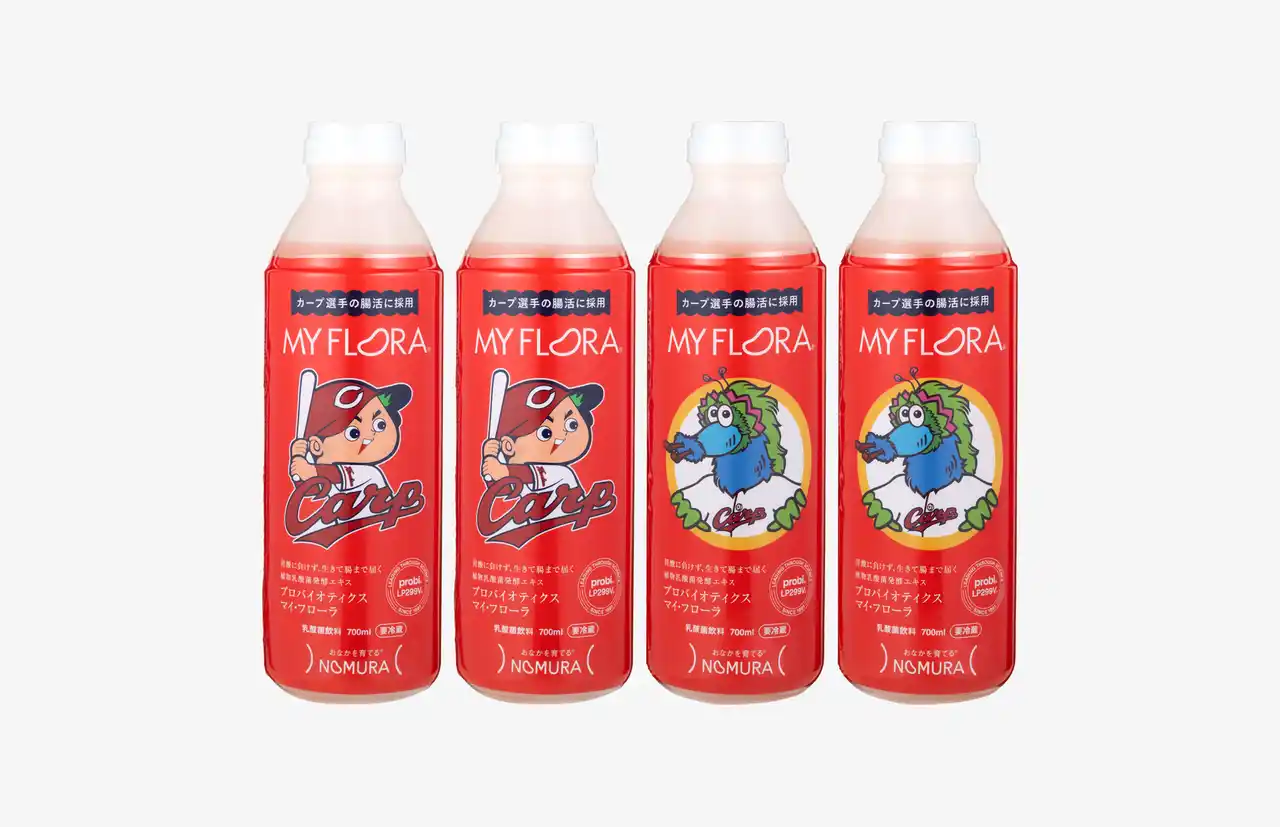 「おなかを育てる」腸活専門メーカーの野村乳業株式会社(本社:広島県安芸郡府中町、代表取締役:野村和弘)は、“腸”からカープを強くする「Gut Power Project」始動を記念して、カープ選手の腸活に採用された実感腸活ドリンク「マイ・フローラ」のカープデザインボトルを3000本の数量限定で発売することをお知らせいたします。 |