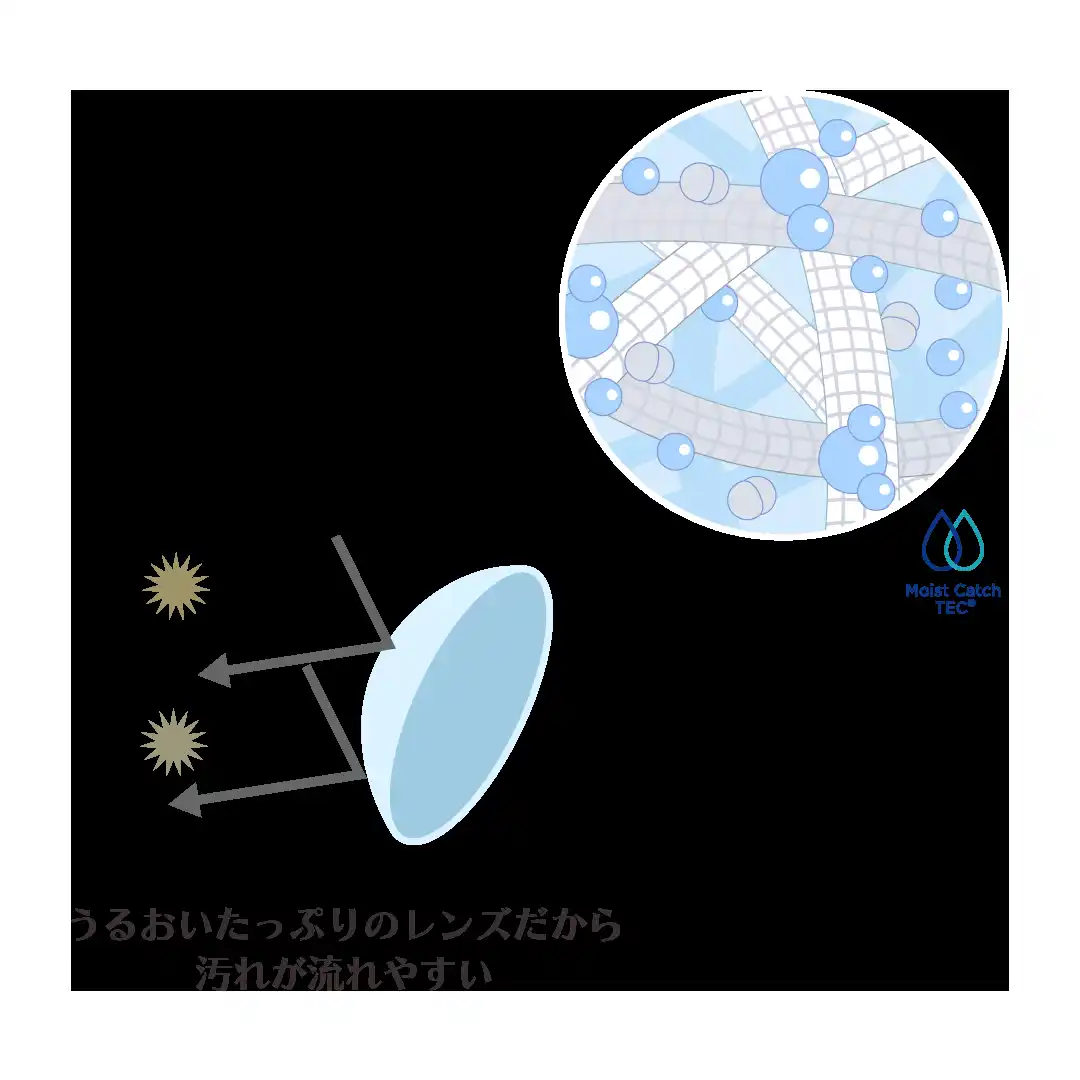 | また今回も話題の新素材【シリコーンハイドロゲル】を採用。酸素をよく通すため瞳に優しく、長時間装用してもまるで裸眼のようなつけごこちを実現しました。 | |||||||||||||