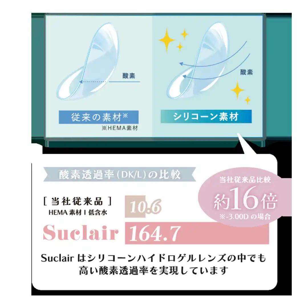 | 1MONTHリフレア『Suclair(シュクレール)』は、リフレアブランド史上初となるシリコーンハイドロゲル素材×マンスリータイプのカラーコンタクトレンズです。 | |||||||||||||