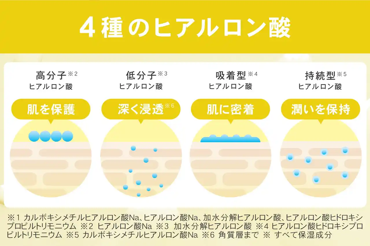 | *⁴ カルボキシメチルヒアルロン酸Na、ヒアルロン酸Na、加水分解ヒアルロン酸、ヒアルロン酸ヒドロキシプロピルトリモニウム | |||||||||||||||||||