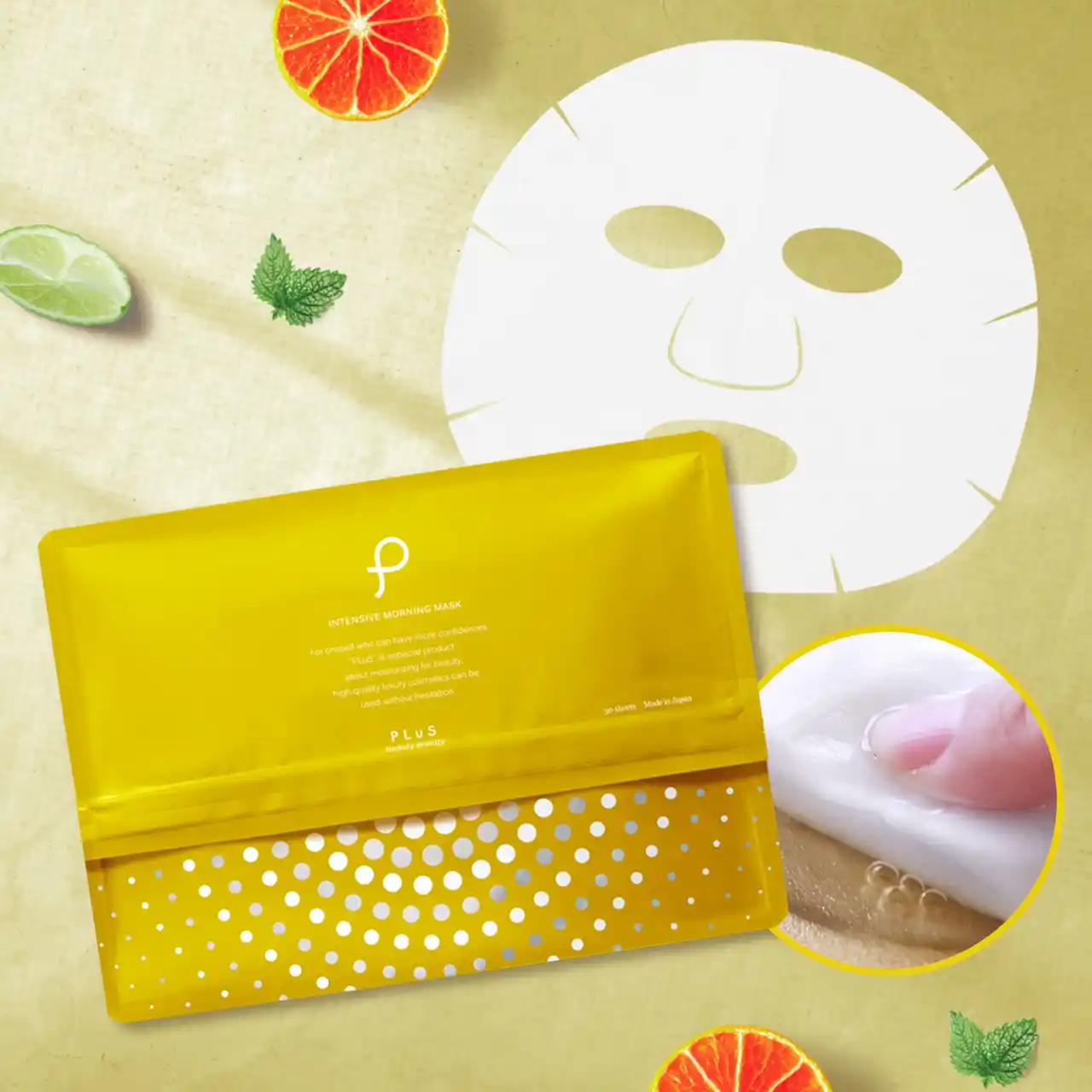 | 「PLuS/プリュ インテンシブ モーニングマスク」は、12種の美容成分を配合した超微粒子ローションをたっぷり420mL含んだ30枚入りのシートマスクです。ひたひたのシートをたった1分貼るだけで、肌に素早くうるおいを届ける時短アイテム。 | |||||||||||||||||||