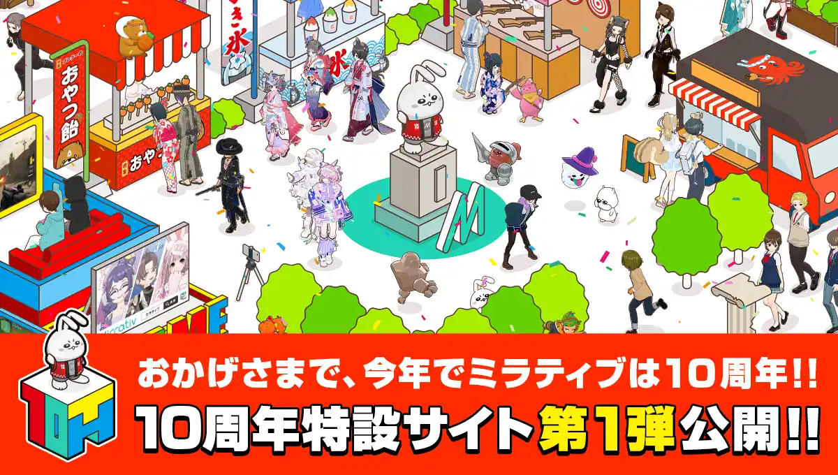 2025年8月28日(木)、ミラティブはサービス開始から10周年を迎えます。 「あのころも、これからも、みんなの居場所。」をテーマに、ミラティブでは10周年を記念したさまざまな企画を展開中です。 |