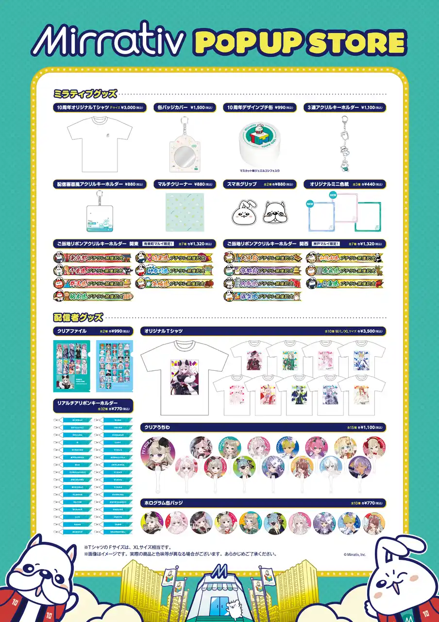 10年という節目に、あの日の配信も、今日の出会いも、すべてがつながる特別な空間へ。 ミラティブの魅力を五感で感じられるこの機会を、どうかお見逃しなく! 皆さまのご来場を、心よりお待ちしております。 詳細は特設サイトをご覧ください。 ▶︎ [ミラティブ10周年記念ポップアップストア 特設サイト] |