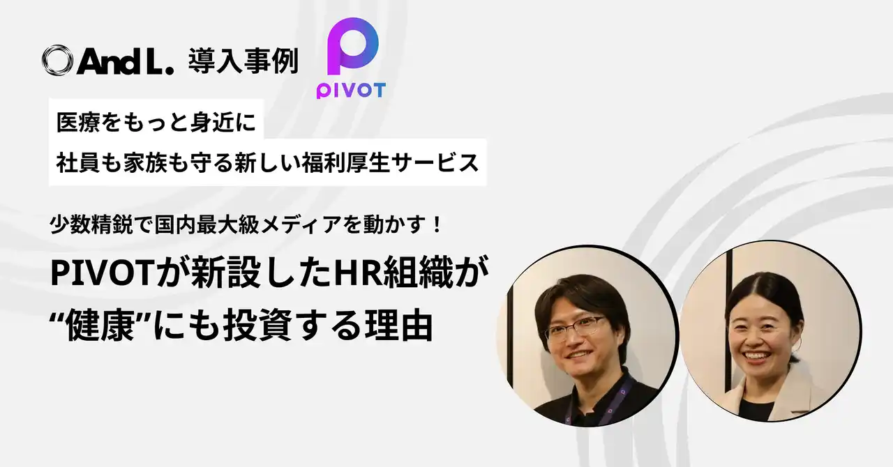 「人生を、ととのえる」をミッションに掲げるアンドエル株式会社(本社:東京都港区、代表取締役:古橋 智史)は、PIVOT株式会社(本社:東京都渋谷区、代表取締役:佐々木 紀彦)に、法人向け健康支援サービス「アンドエルワーク」が導入されたことをお知らせします。 |