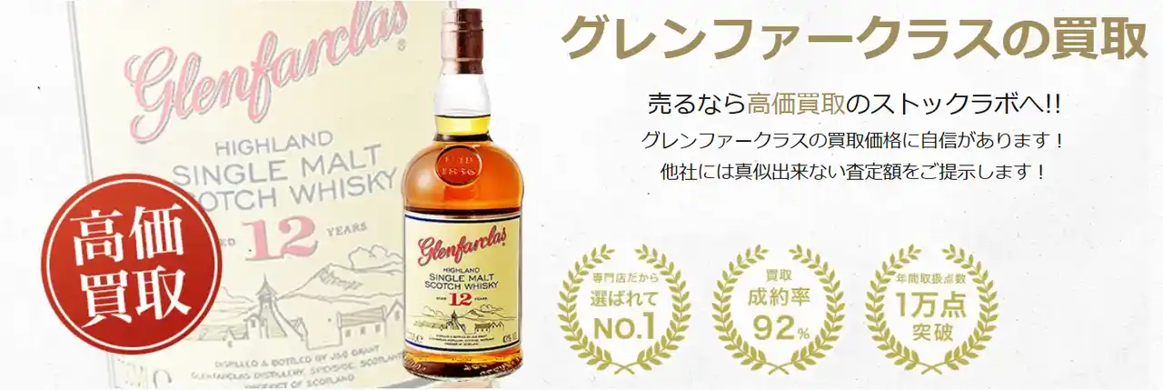ストックラボは、グレンファークラスのような高級シングルモルトを安心して売れる買取店です。 |