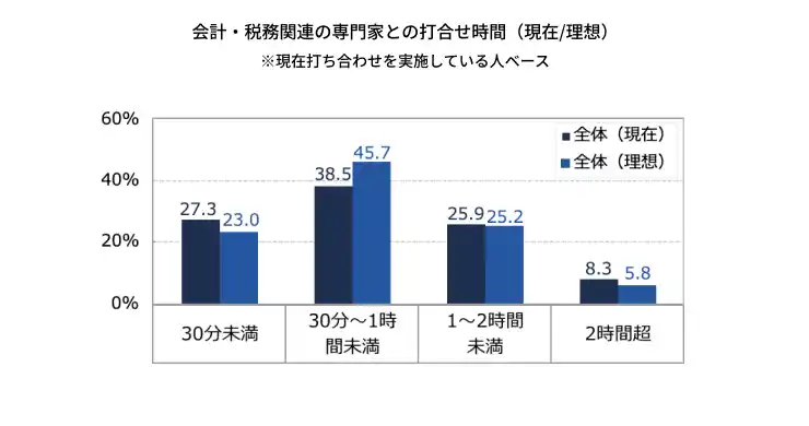理想の打合せ頻度は「月1回程度」、時間は「30分~1時間未満」が最多となりました。 |