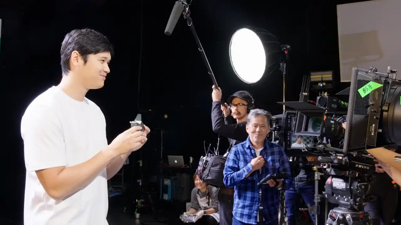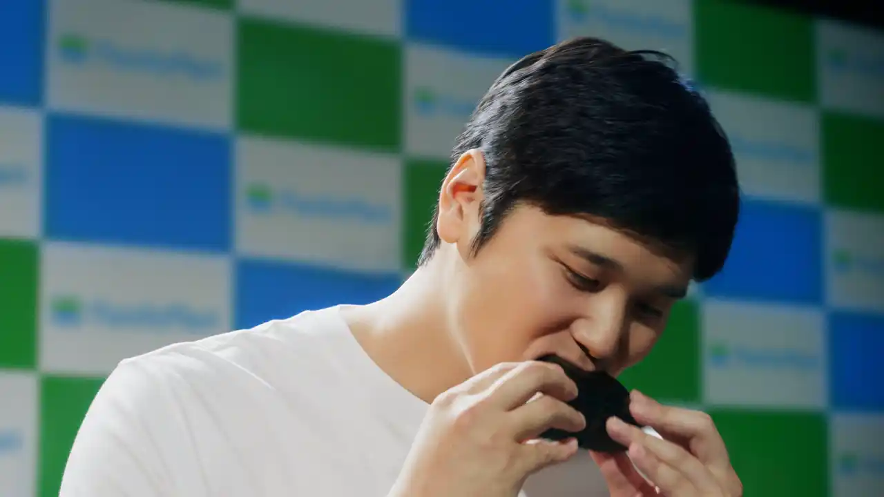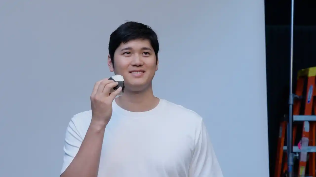 撮影では、おむすびを手に持った状態での演出が多く、「カメラ目線?」「食べない?笑うだけ?」といった演技の細かな確認を、大谷選手が笑顔でスタッフに投げかける場面も。クールな表情と、おむすびを頬張る表情のギャップ、名店とコラボした“シン”商品の本格的なおむすびの魅力にぜひご注目ください。 |