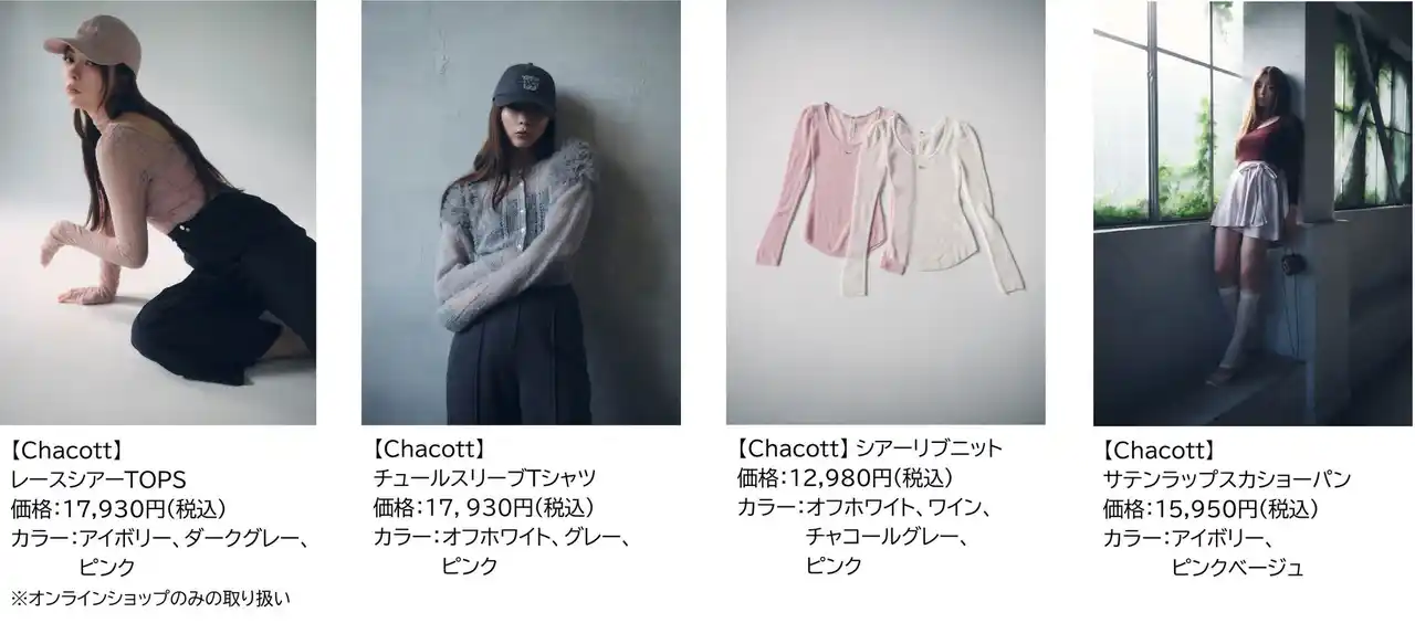 *チャコットショップ(代官山本店、大丸心斎橋店)は、11型、オンラインショップでは全17型を販売します。 |