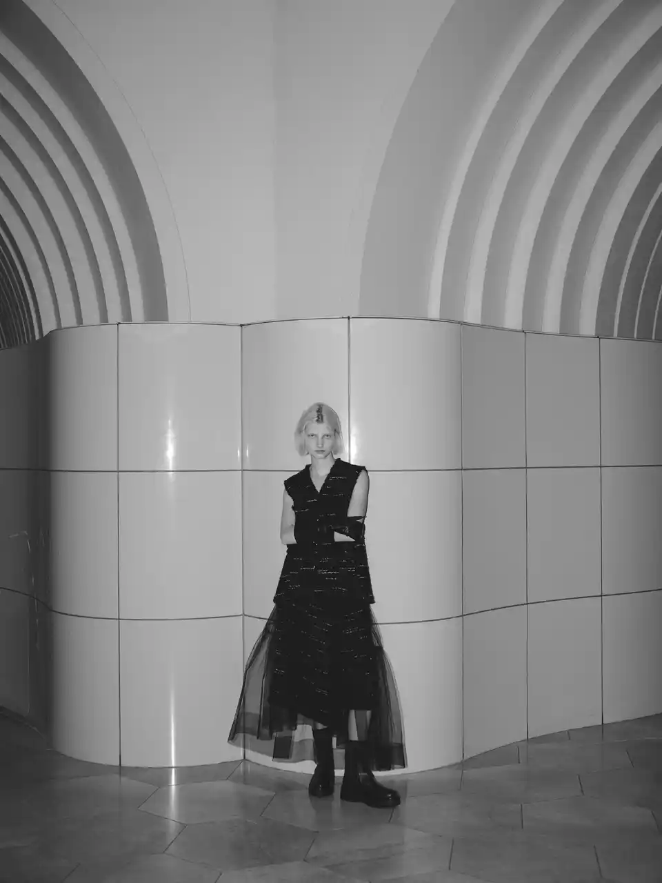 Gilet ¥55,000 / Skirt ¥49,500 / Tulle skirt ¥29,700 / Gloves (italguanto) ¥26,400 / Boots ¥34,100 |