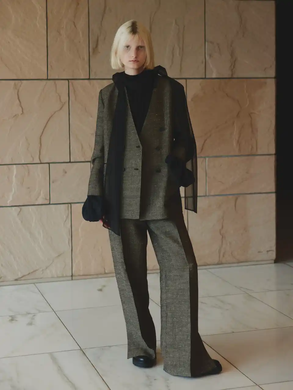 Jacket ¥99,000 / Blouse ¥14,300 / Pullover ¥23,100 / Pants ¥59,400 / Boots ¥28,600 |